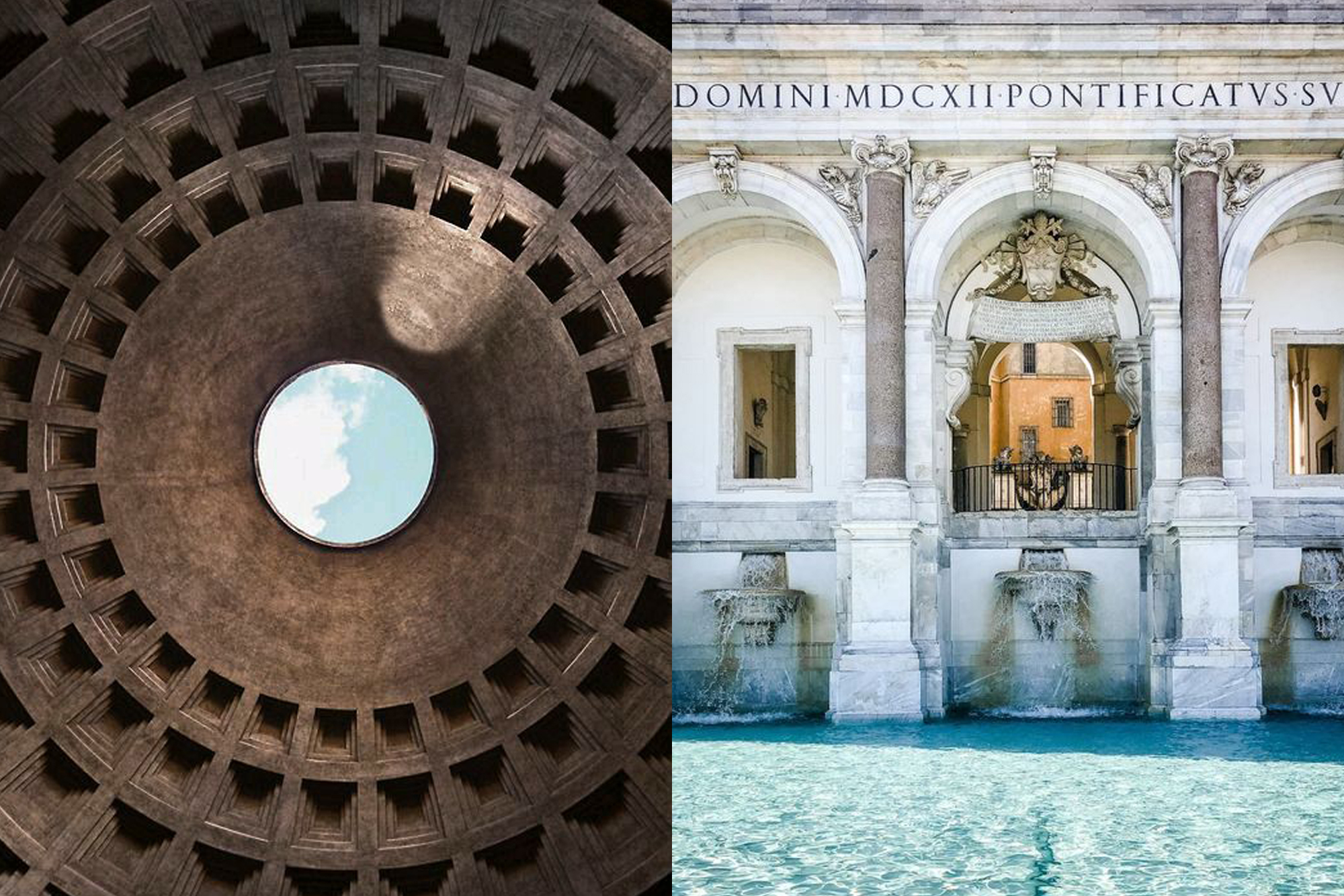 1. El Panteón. Ha conseguido resistir a la acción destructora de la naturaleza desde el año 27 a. C., aproximadamente, gracias a un cemento especial realizado a partir de una mezcla de caliza y ceniza volcánica. Y lo que es más importante, ha resistido al saqueo humano a lo largo de los siglos gracias a su consideración de lugar sagrado. En abril el sol de mediodía se alza vertical y sus rayos penetran por el óculo de la cúpula.