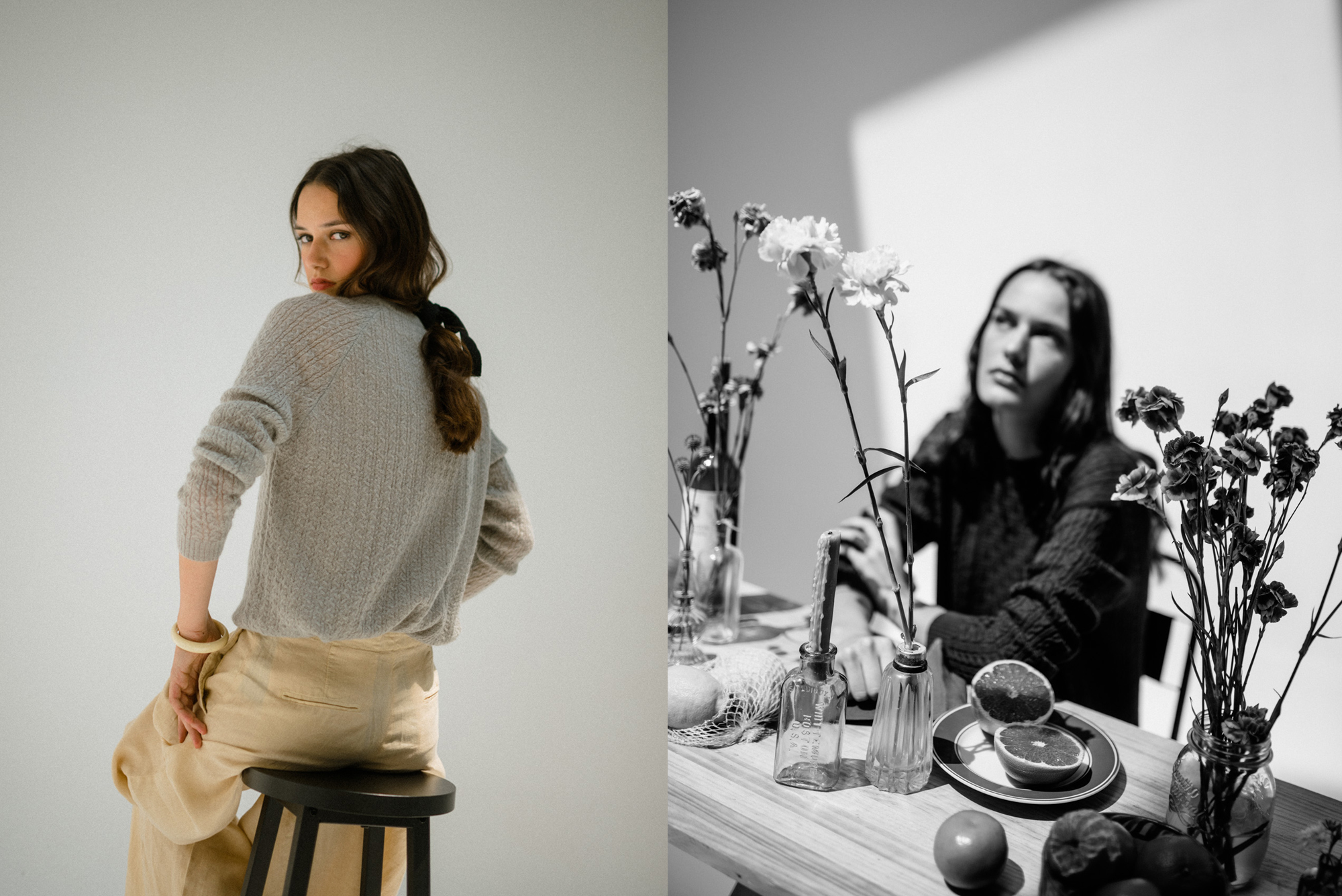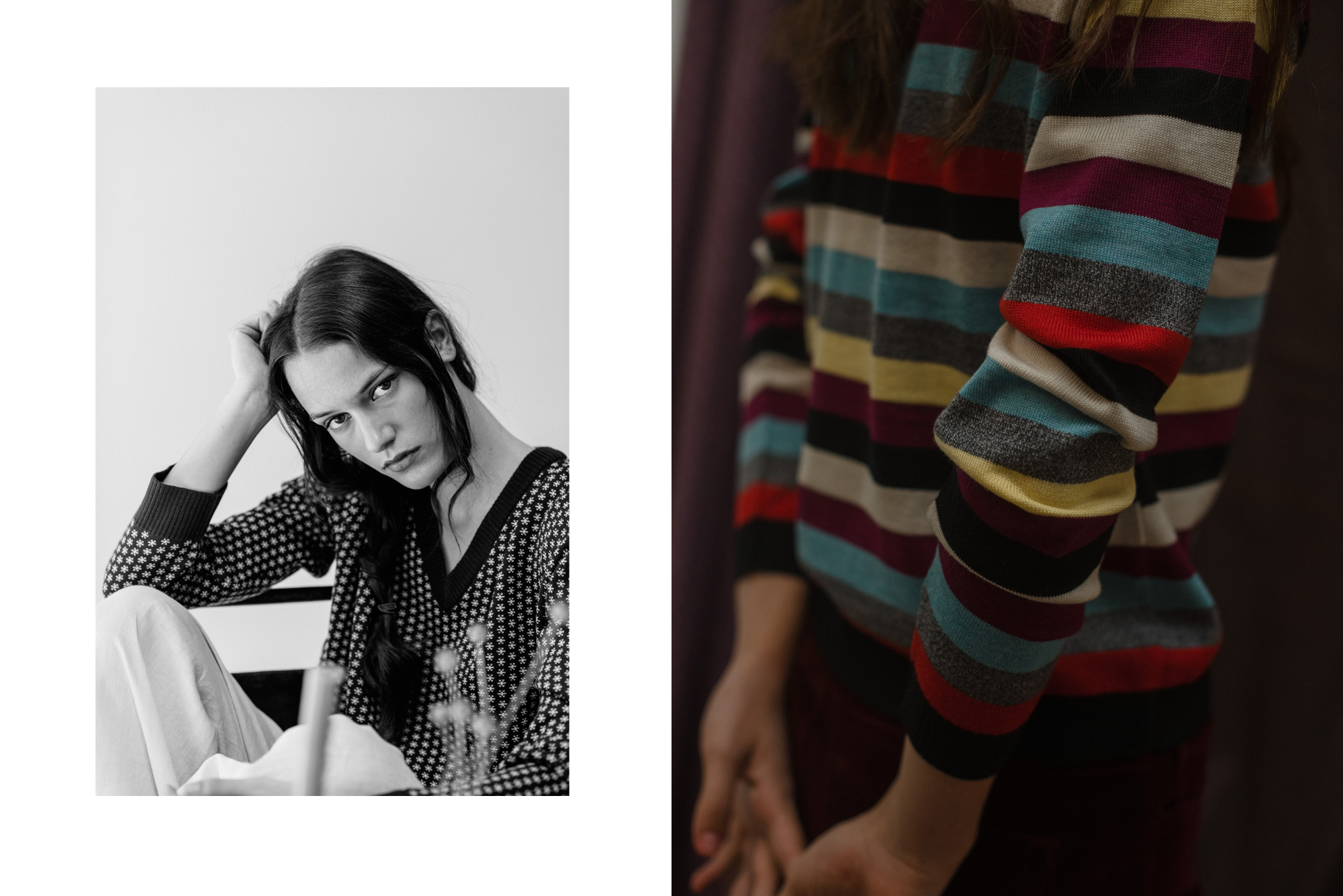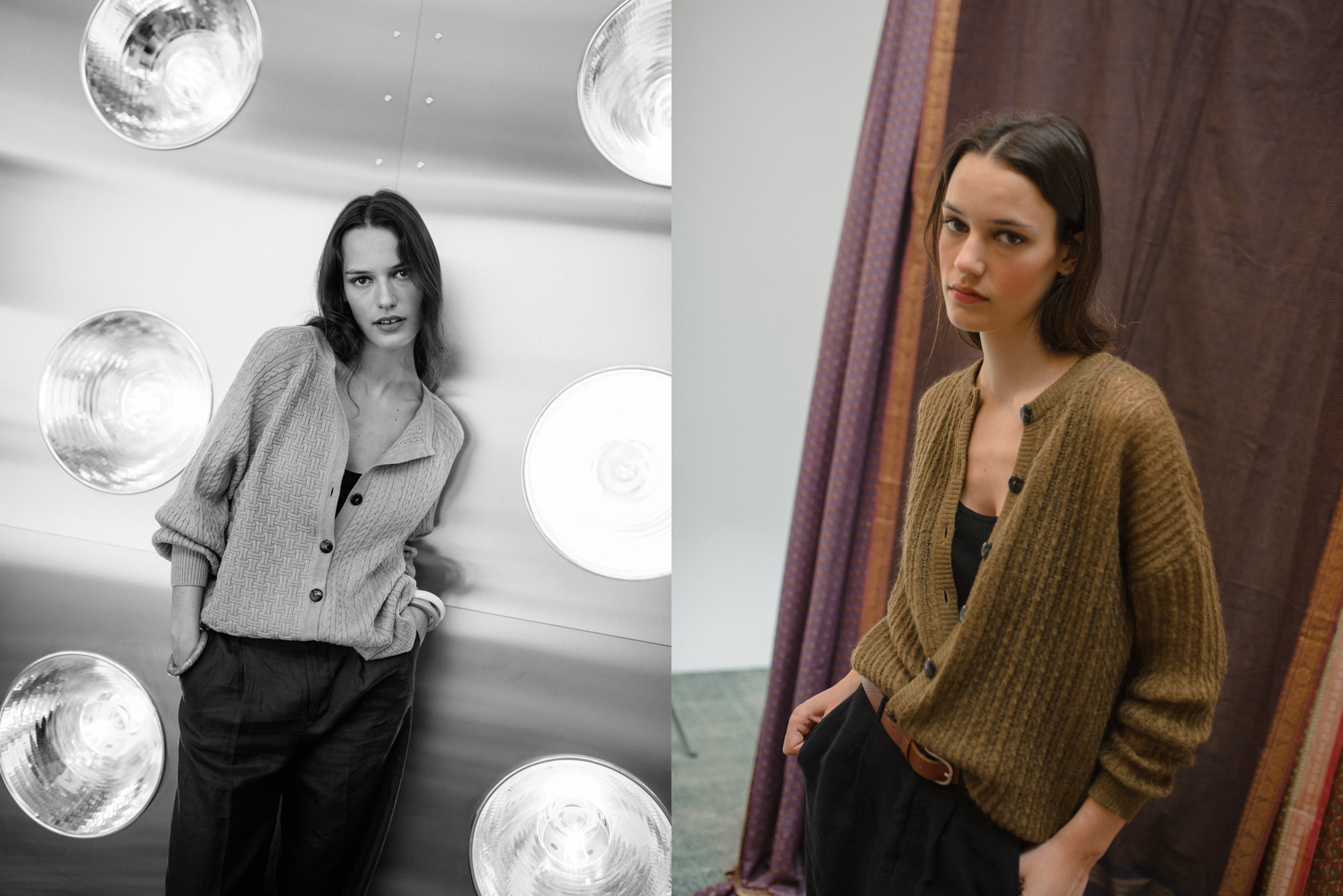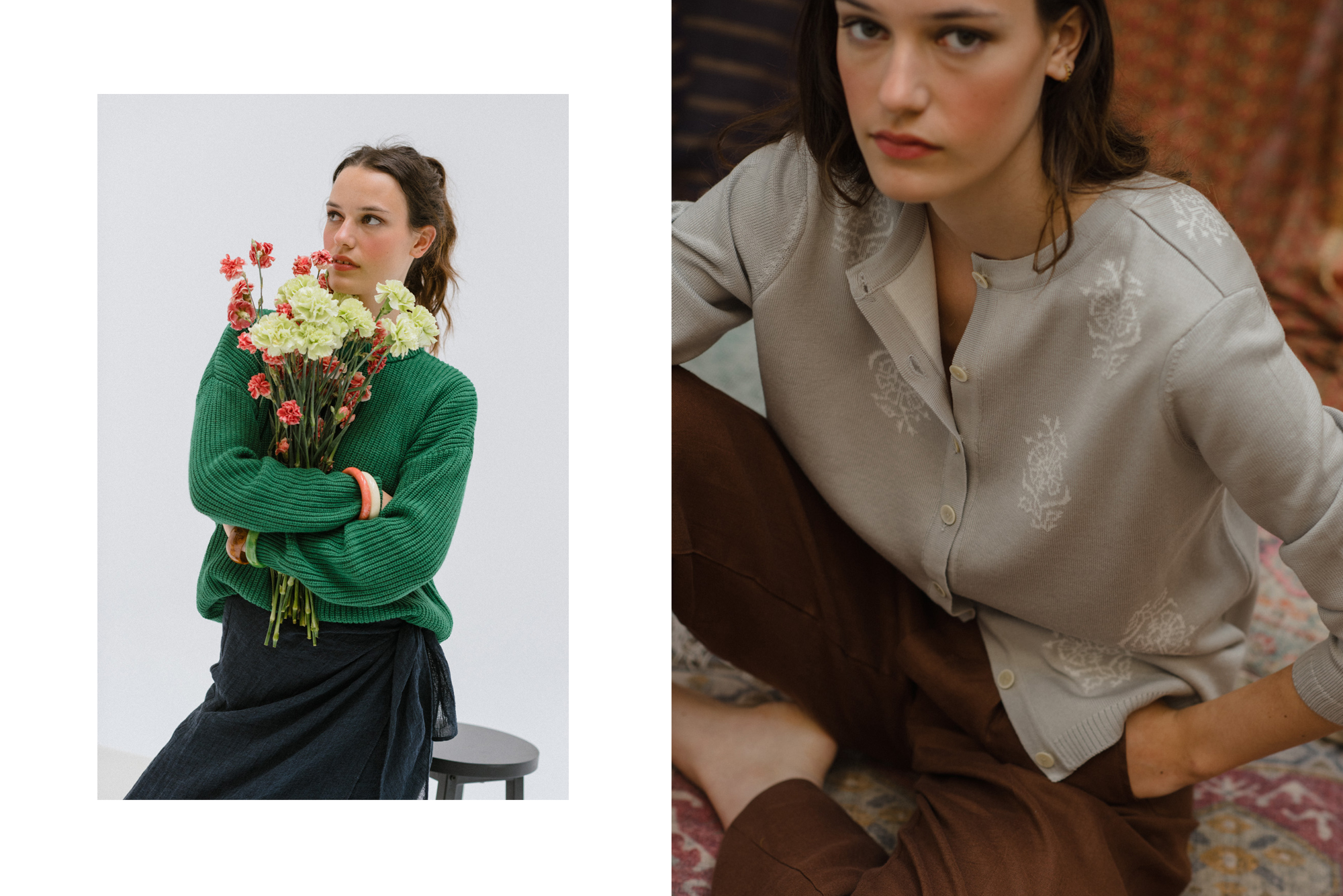 Chaquetas y jerseys tejidos con nuestra lana merino extrafina. Hilaturas de mohair y de fibras recicladas con cashmere. Prendas finas frente a otras gruesas; lisas, con texturas y con dibujos en jaquard. Perfectas para combinar en distintas capas.